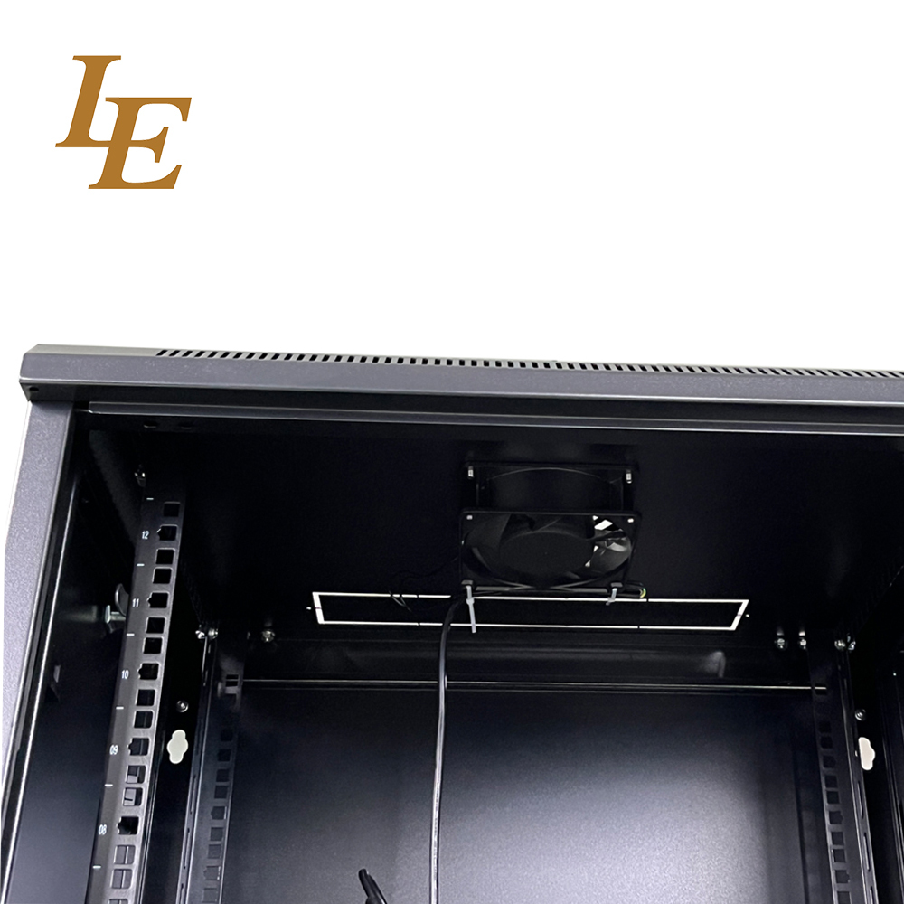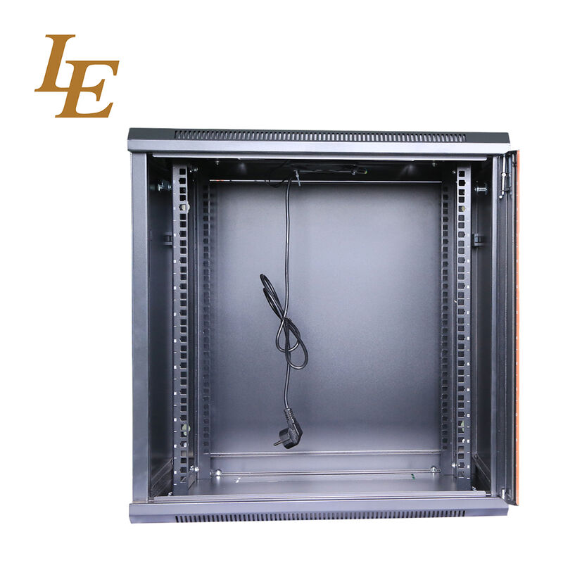 19인치 벽에 장착된 랙 장치 RAL9005 검은 RAL9004 검은 4U 6U 9U 12U 금속 캐비닛 600mm 너비 450mm/600mm 깊이 유리 정문 장식 스트립 빨간색/오렌지/파란색 분리 포장